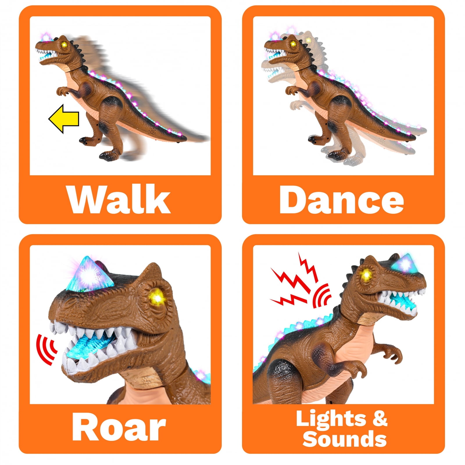 Kidplokio Rc Remote Control Brown T Rex Dinosaur Toys With Led Lights Sounds Boys Ages 3 Walmart Com