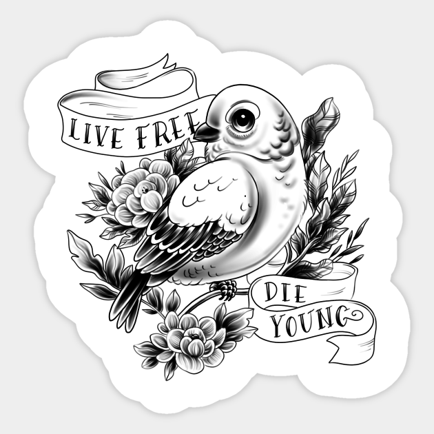 Live Free Die Young Tattoo Design Sticker Teepublic