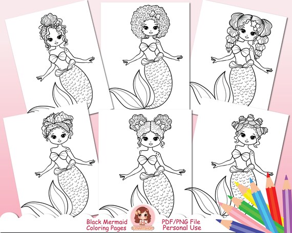 10 Black Mermaid Coloring Pages Printable Pdf A4 Cute Kids Etsy